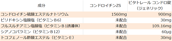 コンドロイチンの配合量はZS錠に比べて少ないですが、関節痛や筋肉痛を緩和するビタミンが配合されています。